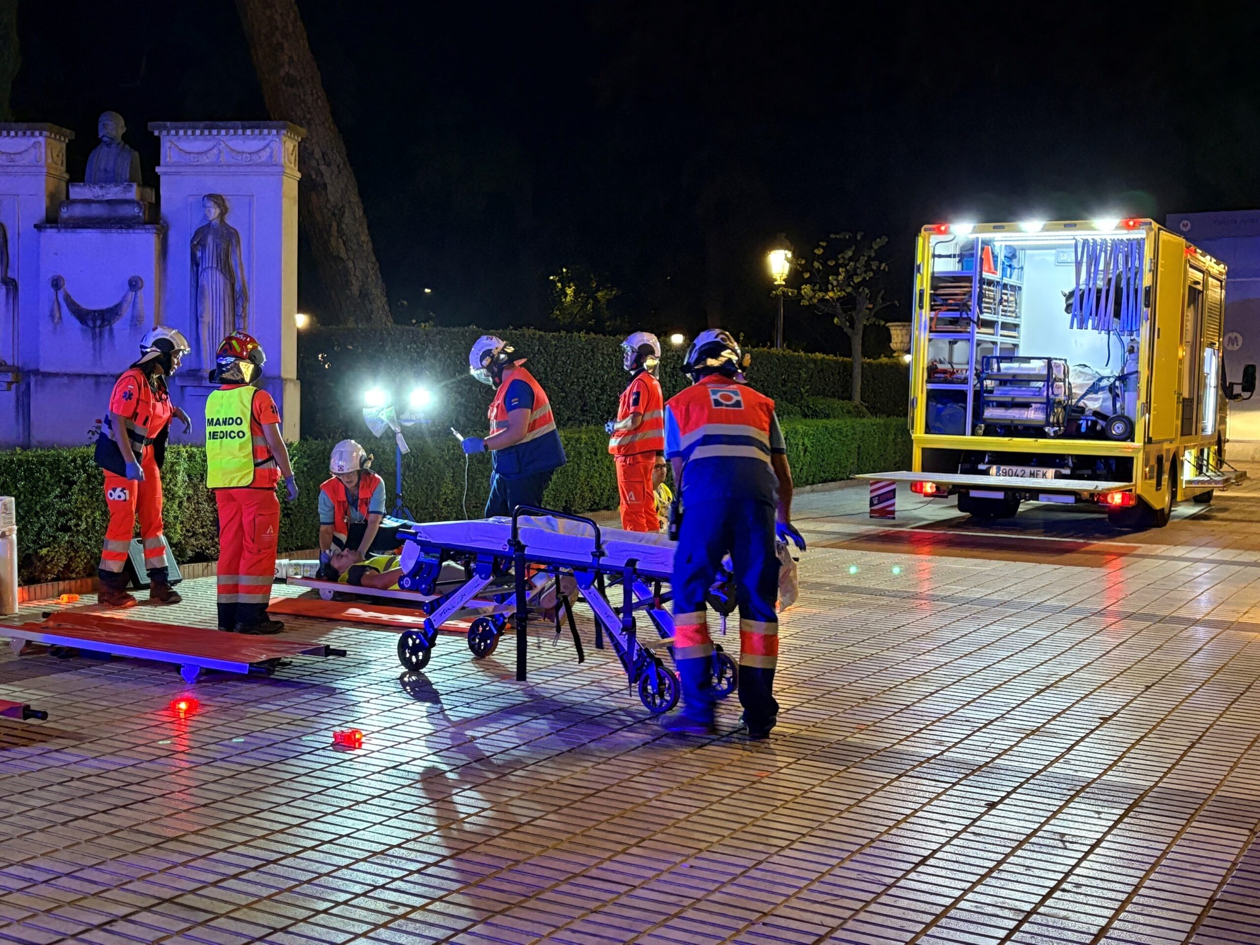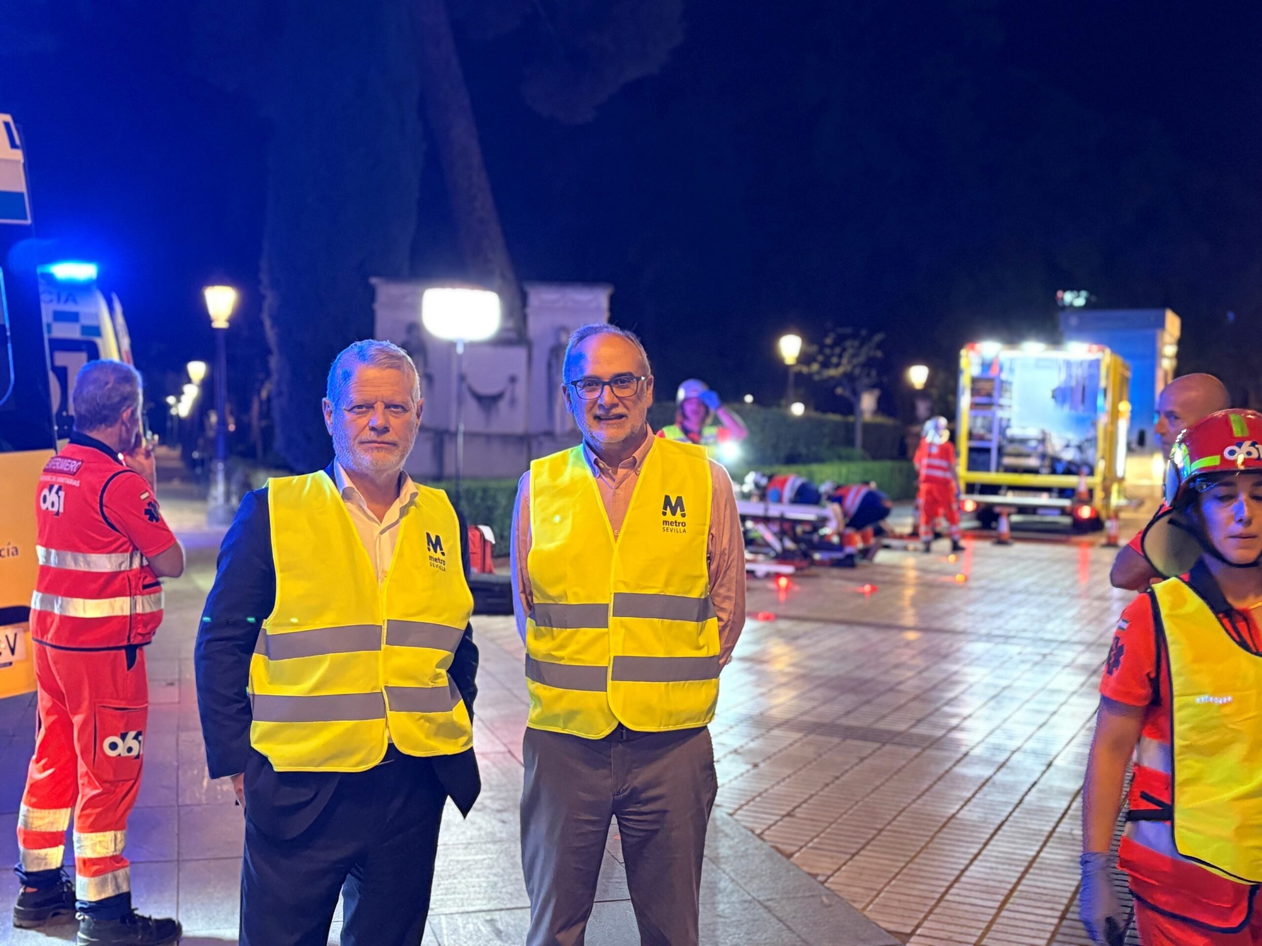 Más de 100 personas entre bomberos, policía nacional, policía local, Emergencias 112, EPES 061, Protección Civil, voluntarios y personal de Metro de Sevilla, coordinados todos por su Responsable de Autoprotección y Seguridad y miembro de la Junta Directiva de Mandatum @Rosa Romero de la Osa, participaron en el simulacro.